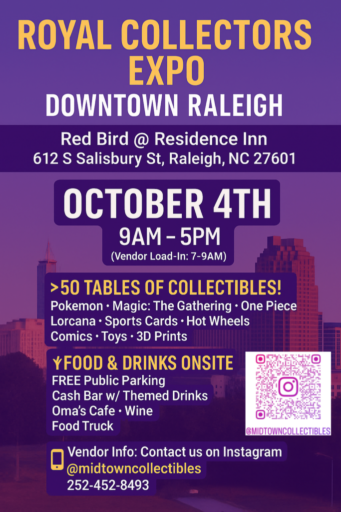 Calling all collectors! Join us on Saturday, October 4, from 9 AM-5PM, and explore 50 tables of collectibles, featuring Pokémon, Magic: The Gathering, comics, Hot Wheels, and much more. Whether you’re buying, trading, or just discovering new treasures, there’s something for every enthusiast.